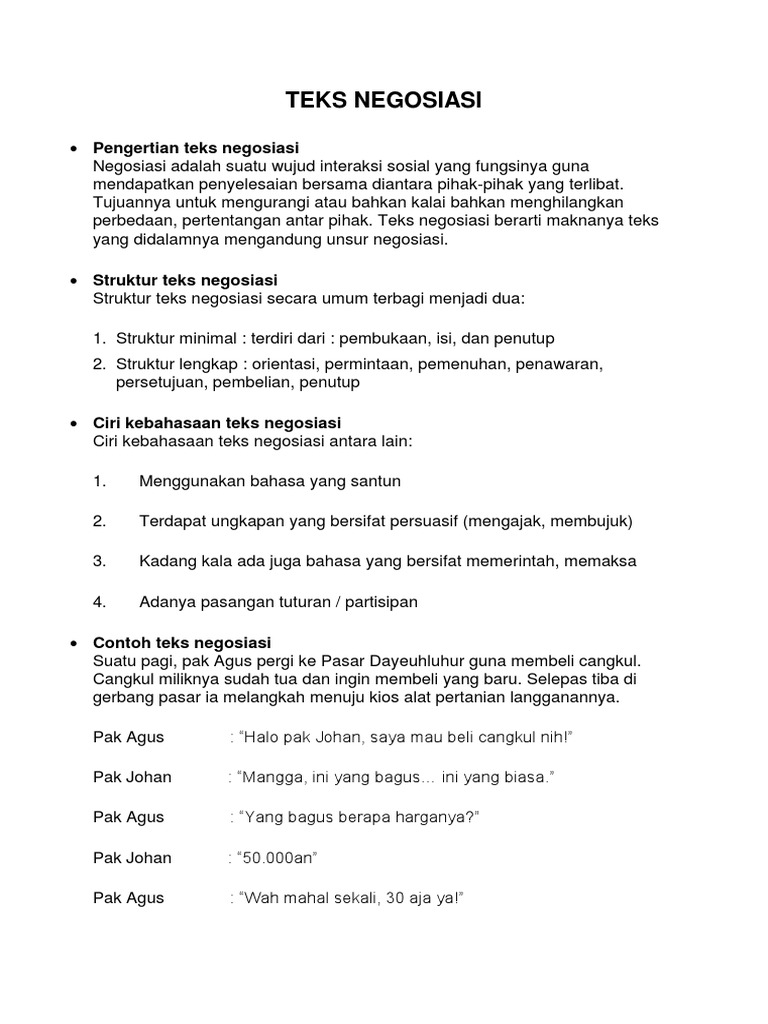 Ada sekitar 50 butir soal pg pilihan ganda bahasa indonesia tentang teks negosiasi dan jawabannya yang bisa adik adik sma smk jadikan referensi dalam menghadapi ujian dari guru. Contoh Teks Negosiasi di Sekolah. Contoh Teks Negosiasi Setelah kita mengetahui masing-masing penjelasan mengenai berbagai teks diartikel sebelumnya.