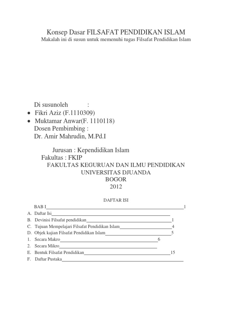 Filsafat Pendidikan Islam Analisis Filosofis Sistem Pendidikan Islam Jakarta. Oleh karena itu matakuliah Filsafat Pendidikan Islam harus. Dapat menyelesaikan tugas makalah Filsafat Ilmu tepat pada waktunya.